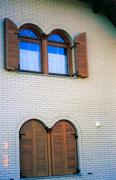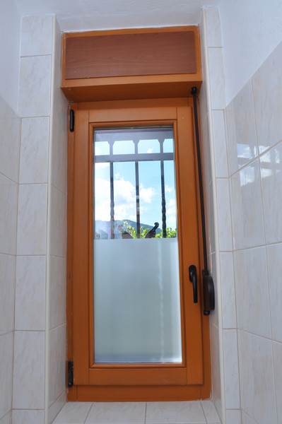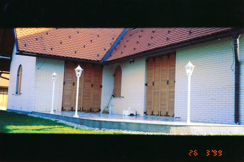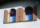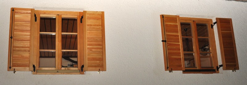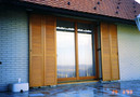 - z lesenimi gibljivimi ali fiksnimi polknami ali z ALU nad okenskimi ali pred okenskimi roletami